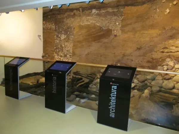 Głównymi obiektami w rezerwacie są średniowieczne wały grodowe z X wieku oraz mur renesansowy z czasów biskupa Jana Lubrańskiego z XVIw. Wały grodu średniowiecznego przedstawione są w przekroju, stąd dokładnie widać ich konstrukcję oraz rozmiary. Mur renesansowy ogląda się po przeszklonej podłodze.