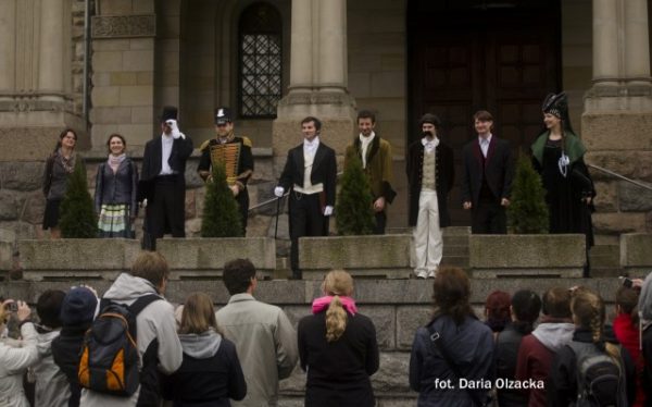 Następnie udano się na Plac Wolności, by tam porozmawiać z hrabią Raczyńskim. Hrabia dostojnym głosem opowiadał o stawianiu biblioteki, zdradził jak wyglądał „dom dla pozornie umarłych” oraz dlaczego zaniechał jego budowy. Przewodnik odczytał fragment nekrologu hrabiego a widzowie sami mieli okazję ocenić, na ile opinia publiczna XIX wieku była przychylna lub też wroga względem tej postaci. Kolejną osobistością, która wyszła na spotkanie ze zwiedzającymi, był dobry znajomy Cegielskiego, Karol Marcinkowski. Zwiedzający spotkali go przechadzającego się po holu Uniwersytetu Medycznego. Pan doktor dał się poznać nie tylko jako mężczyzna o wyjątkowo mocnym charakterze, ale też jako mężczyzna wrażliwy, serdeczny i … nieśmiały.